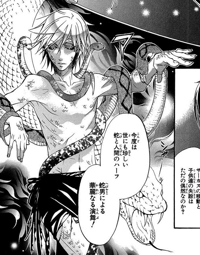 ❧ Always has at least two snakes on him, generally on his shoulders or wrapped around his arm, with a couple smaller ones slithering through his clothes.